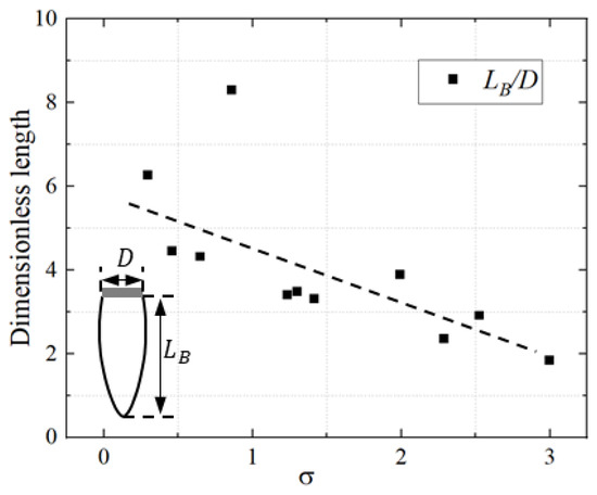 Through further statistics on the change of cavity length under different cavitation numbers, as shown in