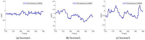 is the radiation damping coefficient, and is the extra viscous damping coefficient. is the maximum angular displacement within the allowable range. Hence, the reference velocity can be calculated from Equations (14) and (15) since the instantaneous amplitude and frequency of the WEM signal have been obtained using the EKF.