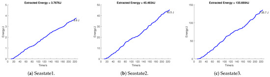 The generated instantaneous power and extracted energy through the power take-off system are shown in Figure 9 and Figure 10. It is clear that the proposed MPC tracking approach only causes very few negative power excursions, which is a benefit for the PTO system solving the large bidirectional flow problem and reducing the energy loss during the motor mode.