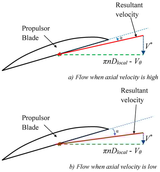 Influence of axial flow velocity on flow into propeller blade at Dlocal.