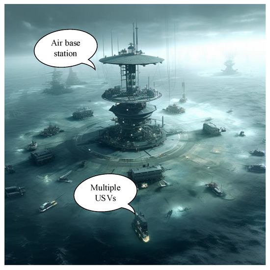 Sea area scenarios with aerial base stations and USV clusters.