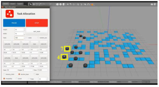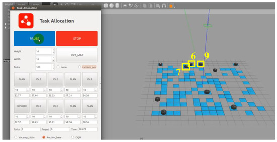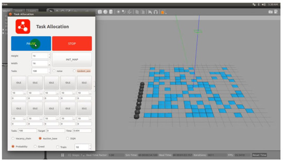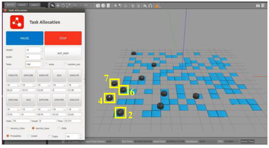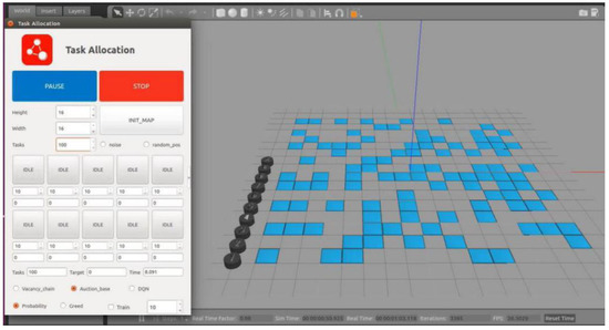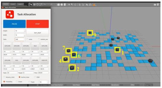 In Robot Operation System (ROS), the traditional MBM is applied to allocate targets for multiple USVs within the Gazebo platform. The simulation environment is shown in Figure 7.