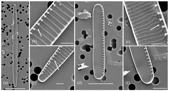 | Species | Width (µm) | Length (µm) | Central Nodule | Interstriae in 10 µm | Fibulae in 10 µm | Poroids in 1 µm | Rows of Poroids | Band Striae in 10 µm | |