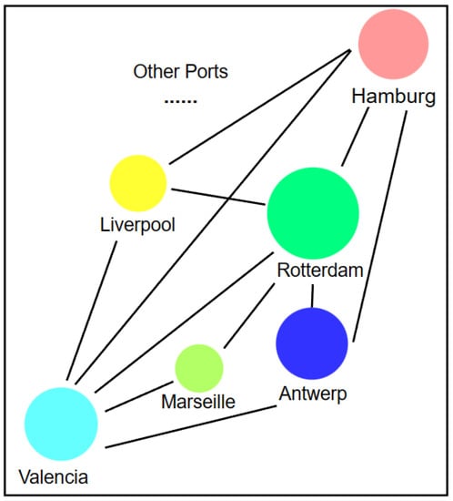 Finally, we obtain a sub-network structure comprising multiple ports, with Rotterdam Port as the central hub. The corresponding adjacency matrix is generated as a result. Figure 6 provides a visual representation of the schematic diagram depicting the multi-port graph structure centered around Rotterdam Port.