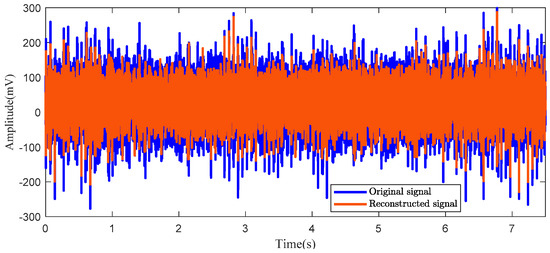 Finally, among the decomposed IMFs, the high-frequency IMFs (IMF1 to IMF11) had undergone denoising processing using the wavelet threshold denoising algorithm. This denoising step aims to reduce noise and enhance the fault-related information contained in these high-frequency IMFs. Subsequently, the denoised high-frequency IMFs were reconstructed together with the low-frequency IMFs (IMF12 to IMF15) to obtain fault-related reconstructed signals. The resulting reconstructed signals capture the relevant fault information, as shown in Figure 8.