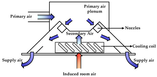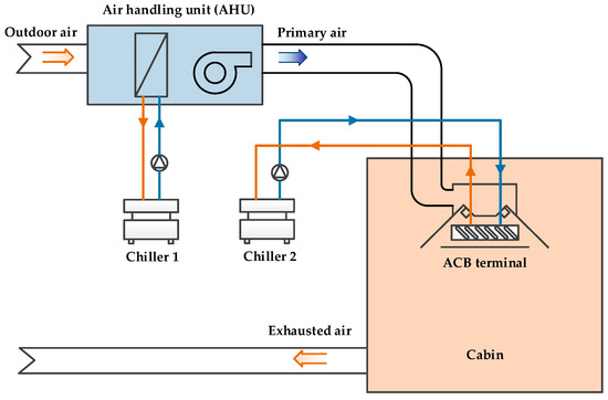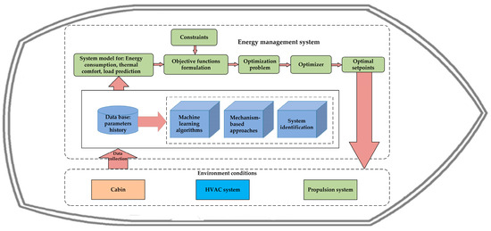 Thus, as shown in Figure 1, today’s implementation of energy management systems (EMS) not only involves the optimization of engine and propulsor power management but also increasingly considers HVAC systems [7]. Active chilled beam (ACB) systems, as a kind of HVAC system, have been constantly used on ships in recent years due to their performance of being more energy efficient [8].