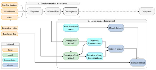 Figure 1 provides an overview of a general risk assessment framework adapted for our later case study input and output requirements (Section 3). The goal of the framework is to quantify the disruption of infrastructure interdependencies in terms of impact to the community.