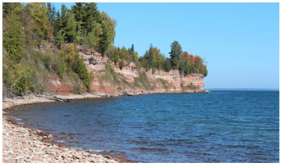 - Vitton, S.; Williams, A. Estimate of Cliff Recession Rates for the Baraga Cliffs; Research Report R1526; Michigan Department of Transportation (MDOT): Lansing, MI, USA, 2008; p. 41. [Google Scholar]