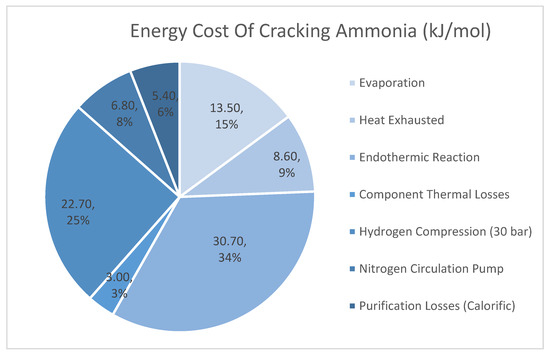 A breakdown of the energy required to crack ammonia in units of kJ/mol of hydrogen generated. Adapted from [26].