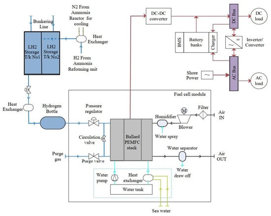 - Ballard Marine Modules—Fuel Cell Power Products. Available online: https://www.ballard.com/fuel-cell-solutions/fuel-cell-power-products/marine-modules (accessed on 2 March 2023).