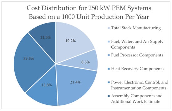 Fuel cells are more expensive than diesel engines; however, many companies see the opportunity to reduce the cost of fuel cells [11]. It was estimated in a US Department of Energy report in 2017 that direct hydrogen PEM fuel cell stacks would cost almost US$45/kW at a volume of 100,000 units per year and US$53/kW at a larger volume of 500,000 units per year [15], but recent releases from fuel cell manufacturers have indicated that with the advancement of the technology and manufacturing improvements, fuel cell prices are targeted to drop by 70–80% as progress continues towards the 2030 deadline for electric and diesel road vehicles [16]. Furthermore when considering the comparison of fuel cells to diesel engines, we must consider that cost continues to be a large barrier in 2023, as indicated in some recently published review articles and industry publications [17].