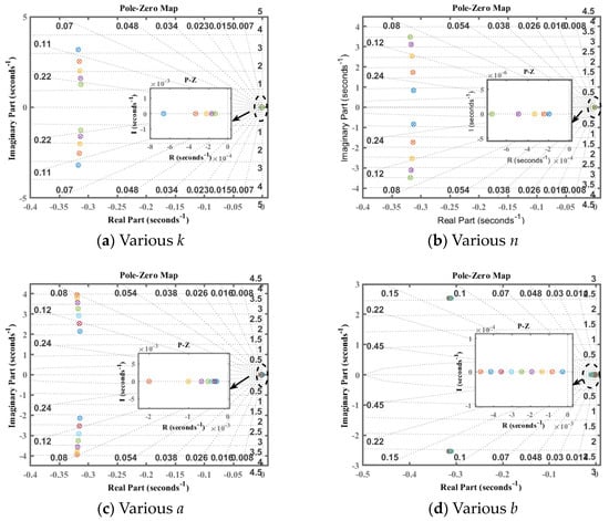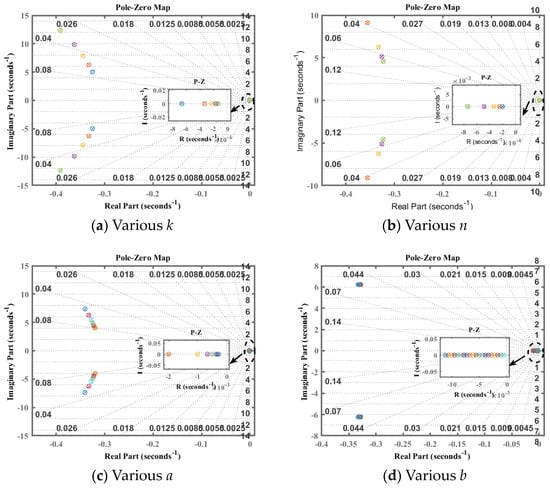 According to (32), the zero-pole maps as shown in Figure 9 can be obtained: