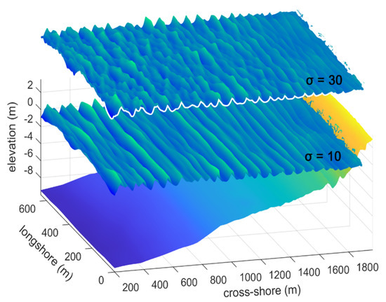 Finally, it is worth noting that the scope of baseline simulations is twofold. On the one hand, the elevation results are used to produce real-world radar images. On the other hand, the shoreline motion results are used to validate the overall methodology.