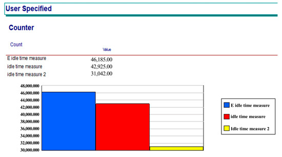 The simulation results for the current loading system are shown in Table 3. As the average waiting time in the bottleneck of this simulation is measured in seconds, the simulation time setting has been set to seconds. The batch delivery procedure, in which drivers were picked up by the shuttle van, resulted in the longest wait time. The 5 s rule enforced on all cars caused the second-longest waiting period. The 5 s rule is a principle applied to all vehicles moving from a yard to a ship within a RORO terminal [36]. The purpose of this rule is to prevent collisions caused by simultaneous departures by having each vehicle depart 5 s after the one in front of it. The total load time was 83,515.60 s. Approximately 3 days would be required to finish the entire loading operation. The result slightly differs from that of the previous study because Park et al. [13] evaluated the loading system primarily inside the vessel without considering the vehicle’s departure rule in the yard. Alternatively, Park et al. [14] investigated the vehicles’ traffic in the yard with a simple loading mechanism inside the vessel. In this study, two earlier simulation models are combined to evaluate the entire loading system.