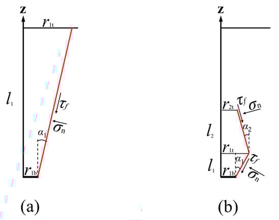 The simplified rupture surface of the single-helix anchor. (a) Shallow mode. (b) Deep mode.