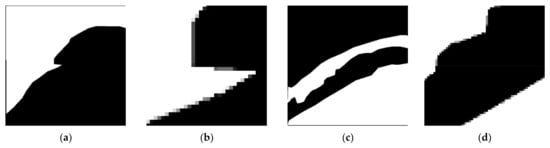 - There are pixel values in the gt_images that are neither 0 nor 255, and these values are mainly found at the edges of the oil region, as shown in Figure 2b,d. The oil spill detection problem is a binary classification problem; thus, the specific class of pixels between 0 and 255 cannot be determined.