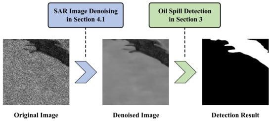 - SAR image noise is multiplicative noise, and the conventional denoising methods will cause the oil spill boundary to be blurred and reduce the segmentation effect;