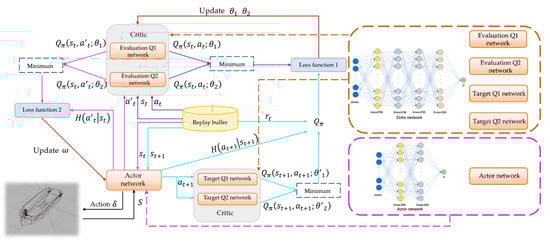 The SAC algorithm was proposed by Haarnoja et al. [27]. Note that the Boltzmann distribution of the Q function in a traditional maximum entropy RL soft Q-learning algorithm cannot solve the action problem in continuous space. In this regard, the SAC algorithm solved this limitation and achieved good convergence.
