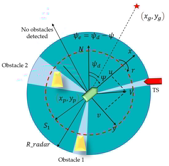 As shown in Figure 3, the ship motion Equation [25] is as follows:
