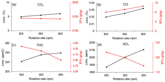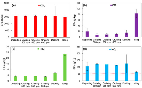 3.1. Gaseous Emission Factors under Different Modes