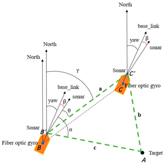 - The relative coordinates of target A at B and C positions under the sonar coordinate system;