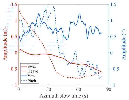 The motion errors collected using the ChinSAS system of the Naval University of Engineering during a sea trial are used for simulation. The actual motion errors collected are shown in Figure 3.