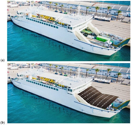 - Karatuğ, Ç.; Durmuşoğlu, Y. Design of a Solar Photovoltaic System for a Ro-Ro Ship and Estimation of Performance Analysis: A Case Study. Solar Energy 2020, 207, 1259–1268. [Google Scholar] [CrossRef]