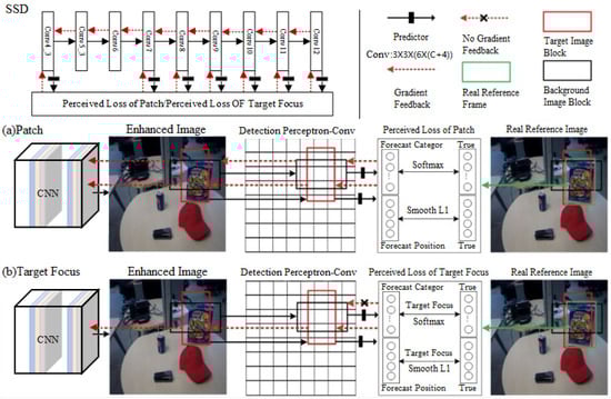 A simplified framework of two detection perceptual enhancement models. (a) Patch detection perceptual enhancement model (b) Target Focus detection perceptual enhancement model.