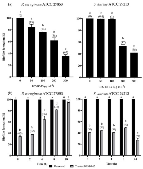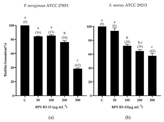 3.2. Antibiofilm Activity of BPS B3-15