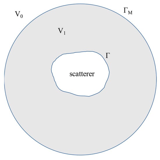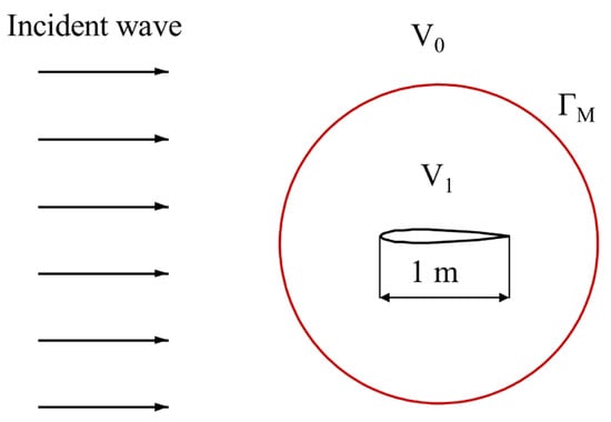 There are many absorbing boundary conditions such as the DtN boundary condition [50], a family of Bayliss–Gunzburger–Turkel boundary conditions [58], and the perfectly matched layer technique [49,59]. Among these techniques, the DtN boundary condition is an exact non-reflection boundary condition without any additional manually selected parameters, and thus, is employed in this work. The shape of the DtN boundary is usually a circle, as shown in Figure 3. The exact acoustic pressure on is denoted as [49]