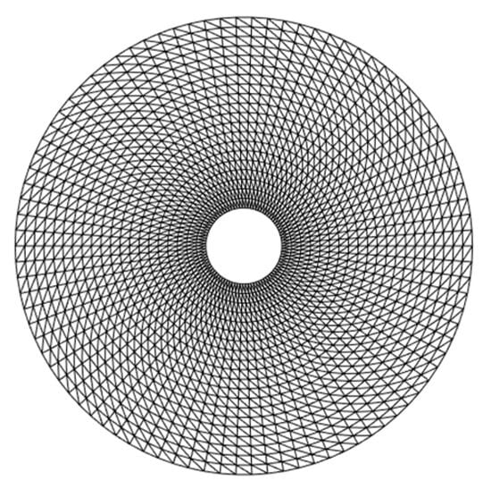 The computational domain is discretized to be a set of triangular elements with the average element size h = 0.050 m as shown in Figure 5. In practical engineering projects, the rule of thumb [38], that more than six elements should be generated per wavelength, needs to be satisfied to generate an acceptable solution for the traditional finite element discretization.