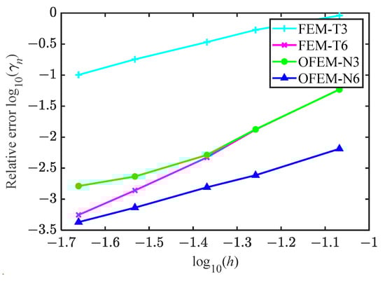 To further investigate the criterion for controlling numerical errors, two schemes are compared separately. First, keeping the non-dimensional wavenumber kh as a constant to control the interpolation error as the requirement of the rule of thumb. Second, keeping the term k3h2 as a constant to control the dispersion error. The results of the above two cases are displayed in Figure 9. There is an obvious rise in the relative errors of the traditional FEM as the average element size decreases when kh is constant. The same conclusion can be obtained for OFEM-N3. It is interesting to note in the OFEM-N6 scheme that there is a turning point at the average element size h = 0.0295 m. With a larger element size, the relative error can be well controlled with the mesh refinement, but with a smaller size, the solution accuracy deteriorates with the mesh refinement.