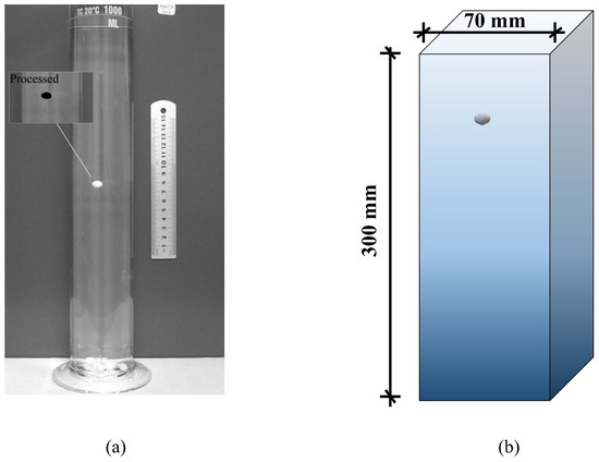 Diagrams of free-settling experiment and simulation: (a) Experiment conducted by Guo et al. [2]; (b) resolved model in this verification.