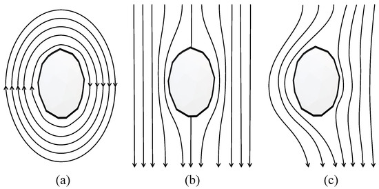 Schematic diagram of a particle subjected to a fluid causing: (a) pure rotation; (b) pure translation; (c) rotation and translation (modified from Stringham et al. [56]).