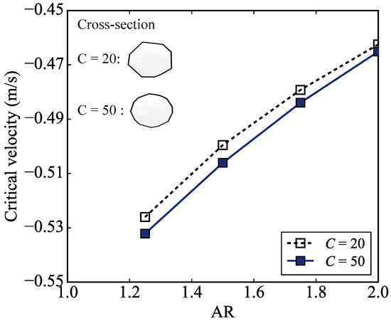 The ultimate settling velocity of polyhedral particles with different AR and C values.