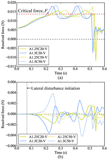 The resolved force acting on particle by the fluid: (a) vertical force; (b) horizontal force.