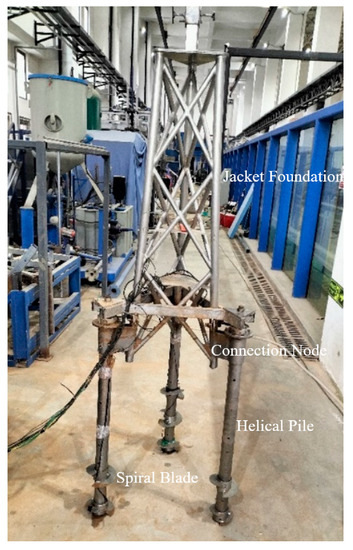 Due to the existence of helical vanes, the area of interaction with soil in the process of compressive and pullout resistance is increased, which gives its axial bearing capacity a large increase, and also has a large bearing capacity advantage compared with conventional piles [1,2,3]. Furthermore, after its combination with the stiffness and low geological requirements of the conduit frame, this helical pile jacket foundation has a great bearing capacity advantage for large megawatt models under large bending moment and large shear load environment in deep and distant sea. It has great bearing capacity advantages and has certain advantages in construction efficiency and quality compared with traditional pile foundations in the field of deep-sea construction [4,5]. Therefore, the helical pile jacket foundation has great potential for offshore wind power projects in deep waters.