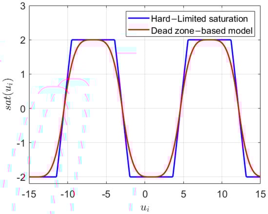 The dead-zone-based model (14), as defined in [], effectively captures the saturation limits in various scenarios. Moreover, the linearity of the system enables the application of robust and adaptive control techniques.
