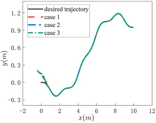 From Figure 8, it can be observed that the USV, under the influence of different control strategies, effectively tracked the desired trajectory with good accuracy. The USV maintained stable motion throughout the entire trajectory, accurately following the desired trajectory.