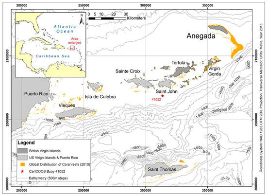 - BVI Government. Unpublished Nautical Charts Data; BVI Government: British Virgin Islands, UK, 2013. [Google Scholar]