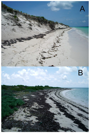 - Spiske, M.; Pilarczyk, J.E.; Mitchell, S.; Halley, R.B.; Otai, T. Coastal erosion and sediment reworking caused by hurricane Irma–implications for storm impact on low-lying tropical islands. Earth Surf. Process. Landf. 2022, 47, 891–907. [Google Scholar] [CrossRef]