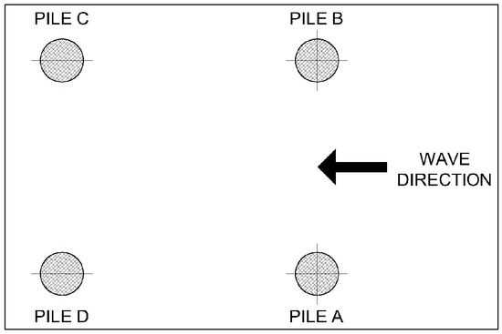 Maximum, minimum, and mean scour extent around each pile, associated with experiment E06, measured from the center of the pile and their equivalent diameters.