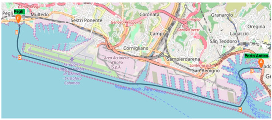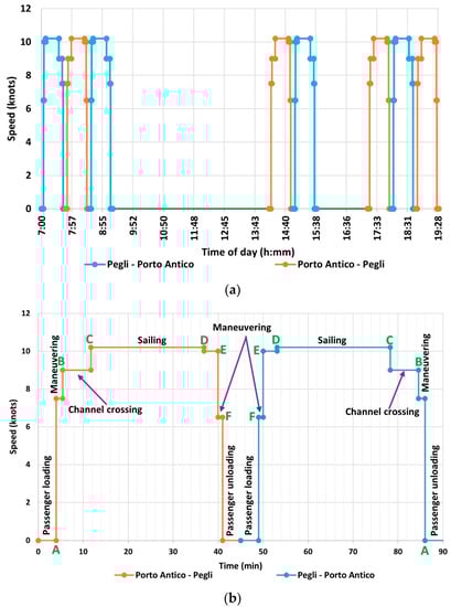 As shown in Figure 2, the trip that takes off from Pegli and ends in Porto Antico is quite like the other trip from Porto Antico to Pegli in terms of spending time and ship speed. Moreover, the recorded energy requirement for the two trips is the same (thanks to an interview with the local crew).