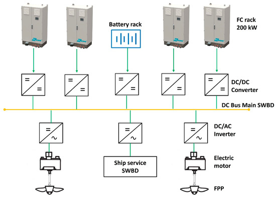 Particularly looking at inland waterways and short sea shipping segments [32], and thanks to demonstrations driven by different EU-funded research projects [33,34,35], fuel cell (FC) systems are gaining more and more interest as a promising solution for maritime applications, as they are characterized by a high efficiency and low level of emissions, noise, and vibrations [35]. For all of these reasons and in accordance with the FC main peculiarities presented in [36,37], the authors already reviewed the recent research development/commercial products of FC systems [35] and investigated the use of FCs onboard different types of vessels, from cruise ships [38] to research vessels [39,40,41].