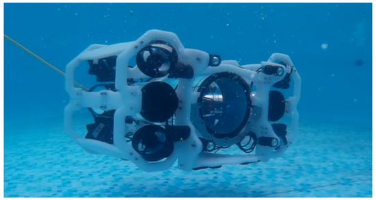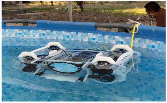 Although there is a wide variety of commercial vehicles, they present some limitations in the field of research, where the prices can be prohibitive for some research centers. Another reason is that commercial vehicles may have closed firmware, which cannot be modified to test new control strategies or incorporate new sensors [6]. For these reasons, the development of underwater vehicles has been of great relevance in different research centers since the 1990s. Among the first non-commercial ROVs is the one developed at the Silsoe Research Institute in the United Kingdom, which was designed to be used in aquaculture tasks, to take images of fish inside a farm [7] (1996). An ROV called THETIS was developed at the University of Thrace, Greece, to carry out tasks such as measuring temperature, pH, dissolved oxygen, as well as measurements of suspended sediments in lakes or rivers [8] (1998). The Autonomous Systems Laboratory of the University of Hawaii has designed the Omni-Directional Intelligent Navigator (ODIN) ROV in 1991, reaching its third version in 2003 [9]. A survey of the vehicles developed during the 1990s is presented in [10,11].