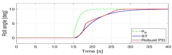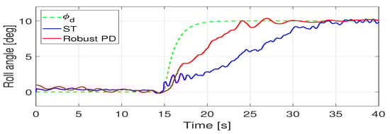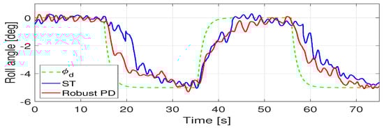 Trajectory tracking experiment for roll angle, Super Twisting and Robust controller.