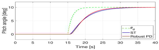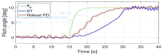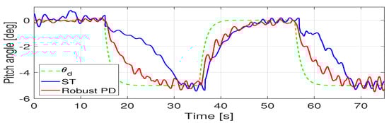 Trajectory tracking experiment for pitch angle, Super Twisting and Robust controller.