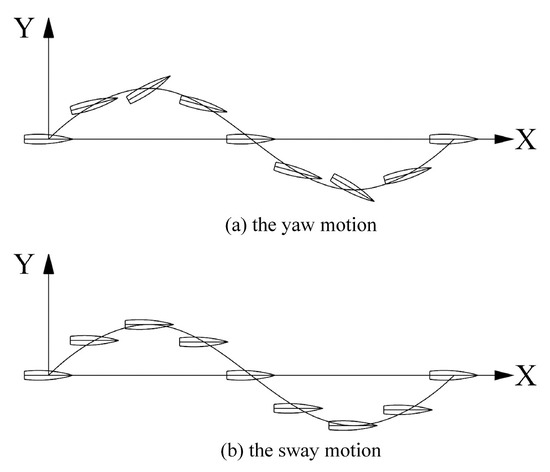 Motion diagram of the ship model: (a) pure yaw motion and (b) pure sway motion.