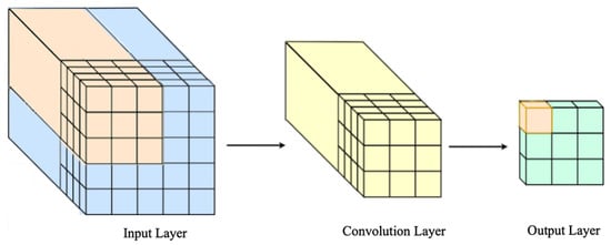 Figure 4 illustrates the 3D convolution process. On the left is the input layer, where the convolutional kernel can move freely in three directions. The convolution is performed on each layer between two cubes, followed by element-wise addition in the depth direction, resulting in one datum and forming a plane. The convolutional kernel then moves in the depth direction, continuing the convolution, which outputs a 3D feature map.