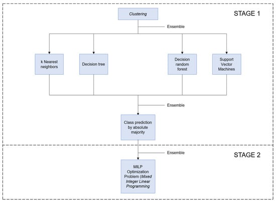 In the second stage, the cluster derived from the ultimate prediction of the first stage is chosen, alongside the specifications for the MILP optimization problem.